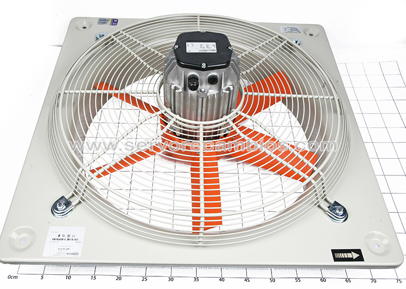 Wall-mounted helical fans (HEP), with fibreglass-reinforced plastic propeller.